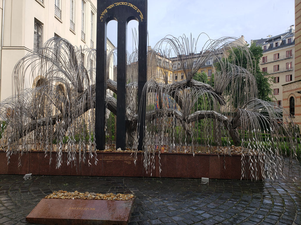 The touching weeping Willow Tree memorial with names of murdered Hungarian Jews on the leaves at Doheny Street Synagogue. |