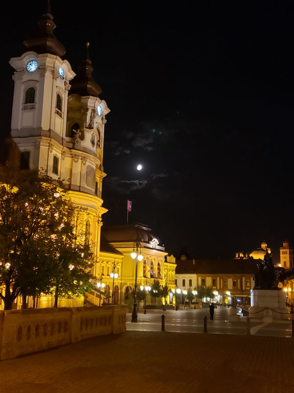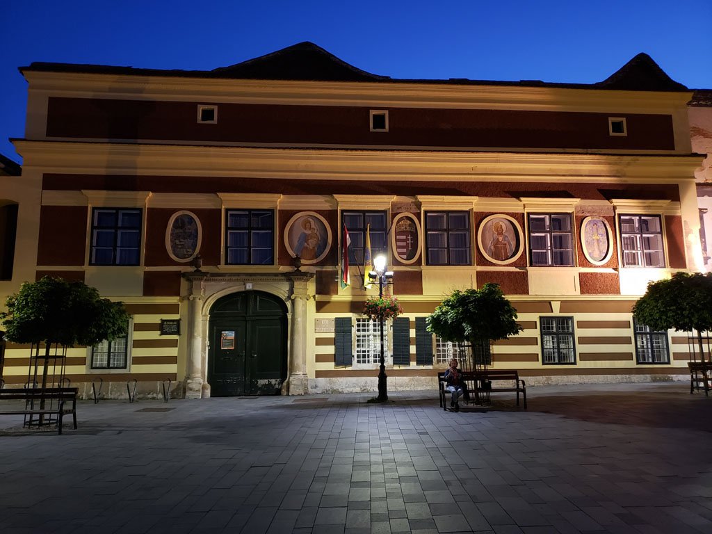 Jurisics Square at night. Building in the background is the 14th century Town Hall. |