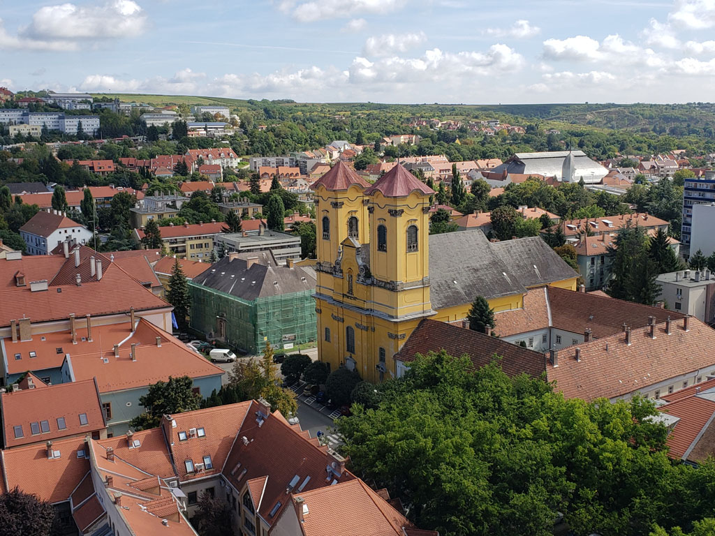 View from the Hero's Gate Tower of Jurisics Square and seventeenth century St. Emeric’s Church. |